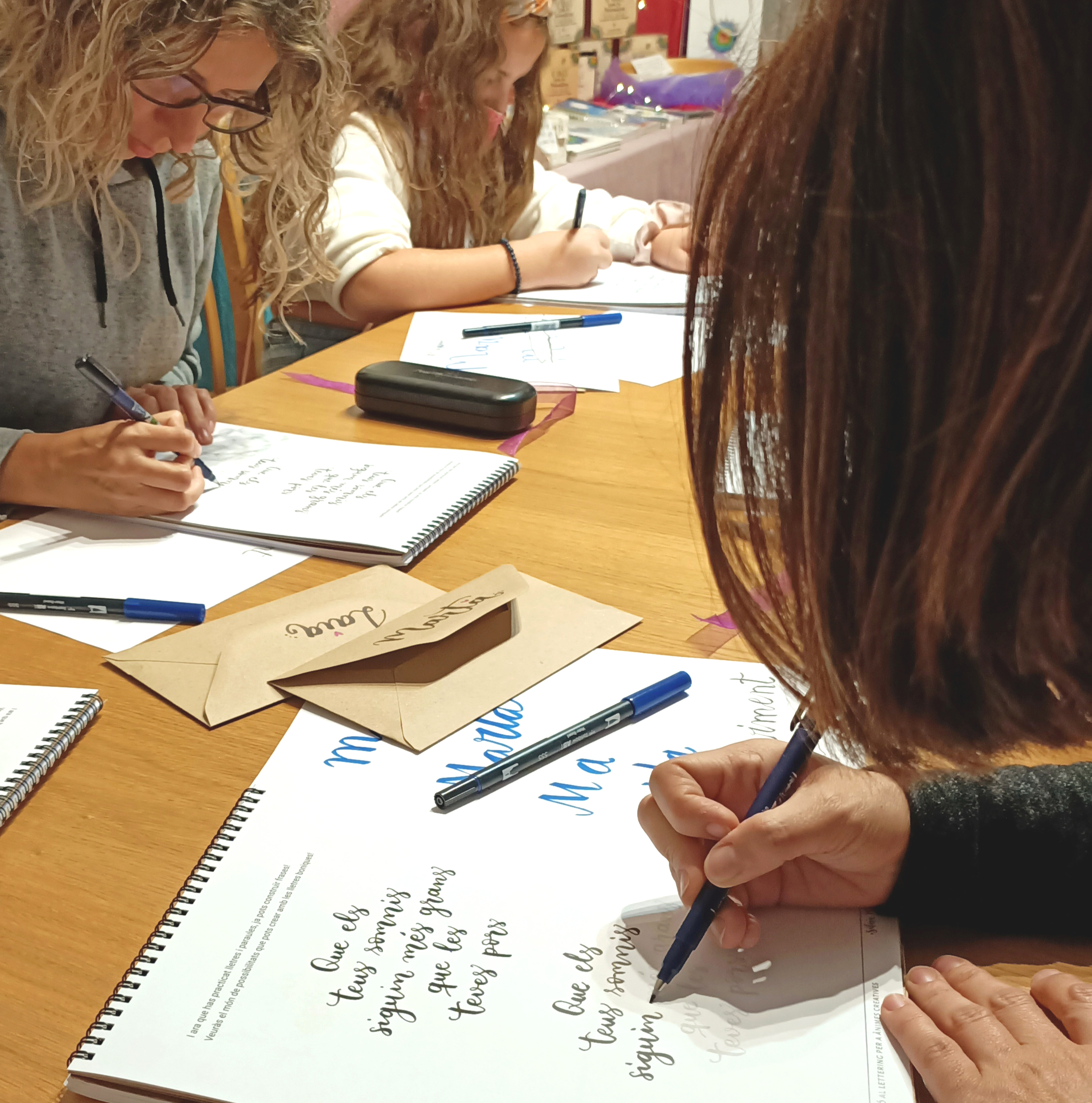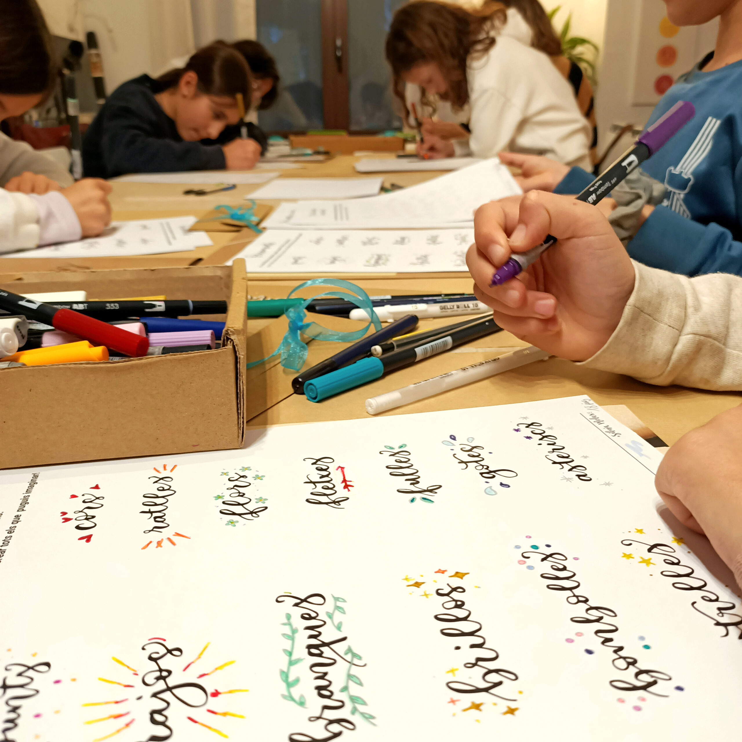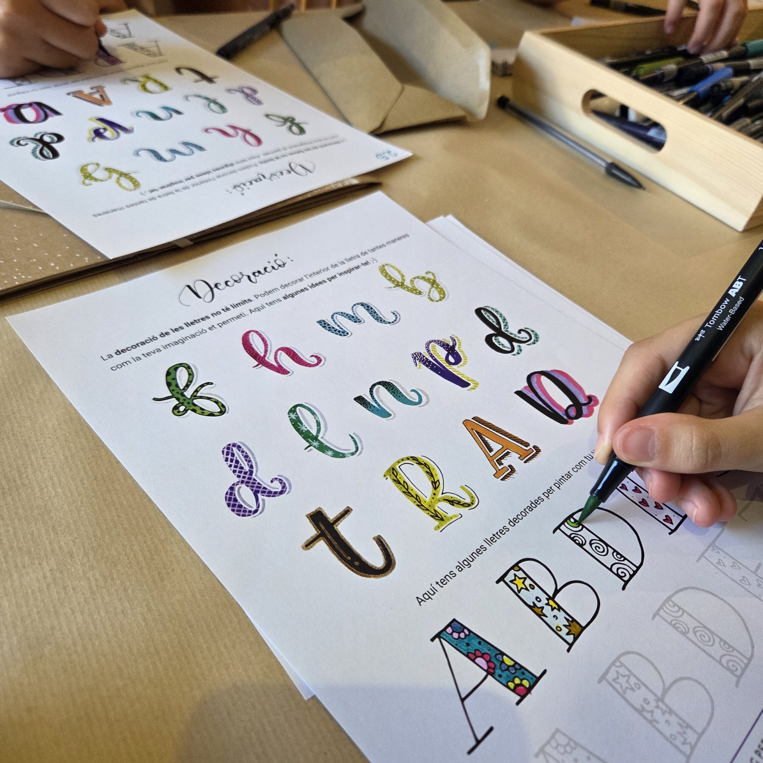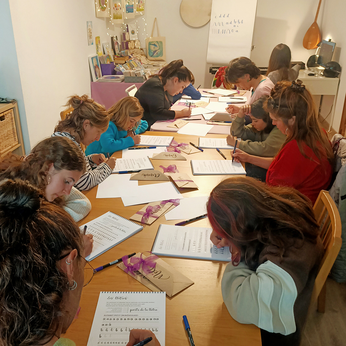 És un taller de 3,5 hores, on practicarem traços senzills, i més complexes, lletres, diversos alfabets, paraules i frases i t’enduràs recursos i idees per practicar a casa amb tot el que has après.