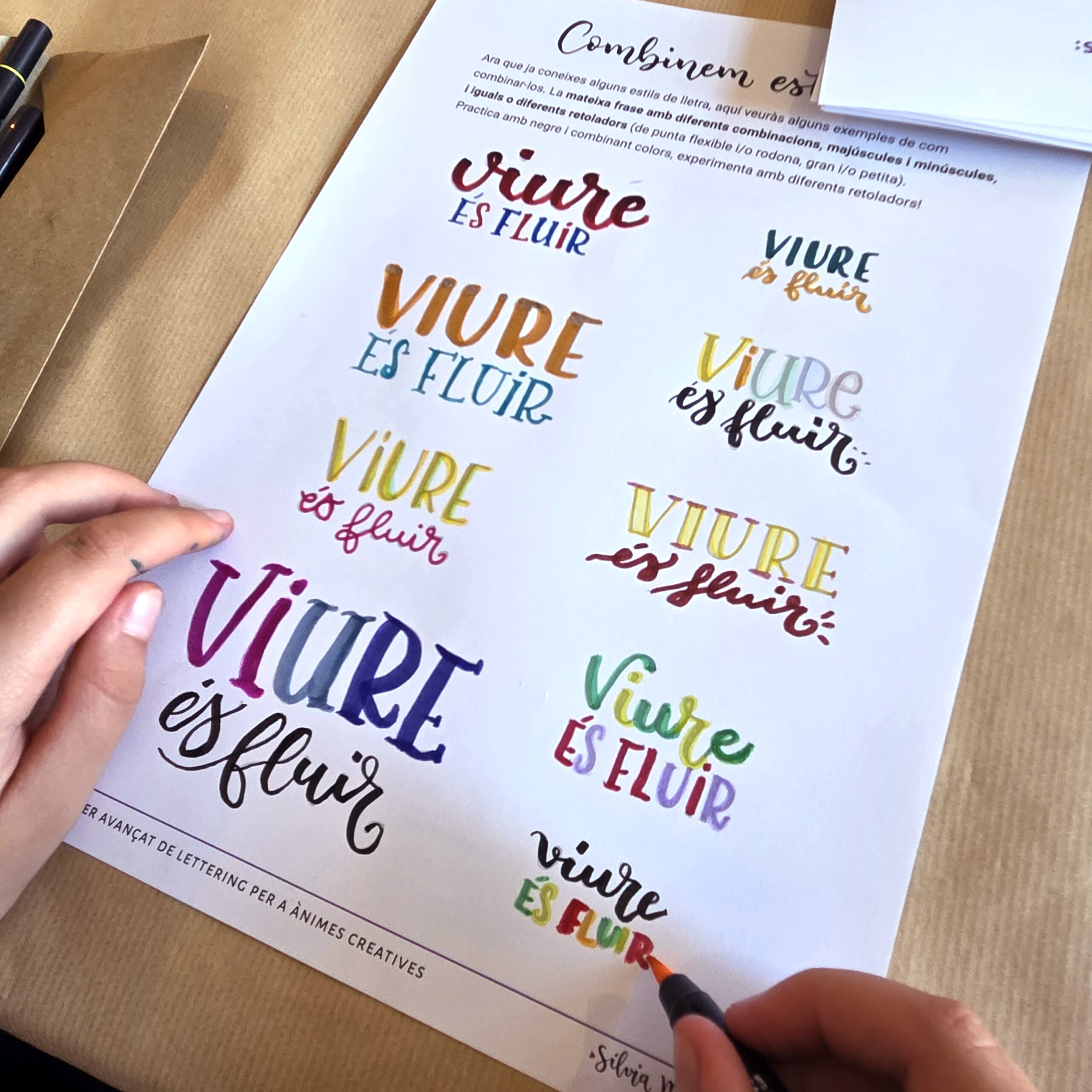 Si prefereixes fer el Taller de Lettering a distància, tens disponible el dossier de la formació de nivell d’Iniciació.