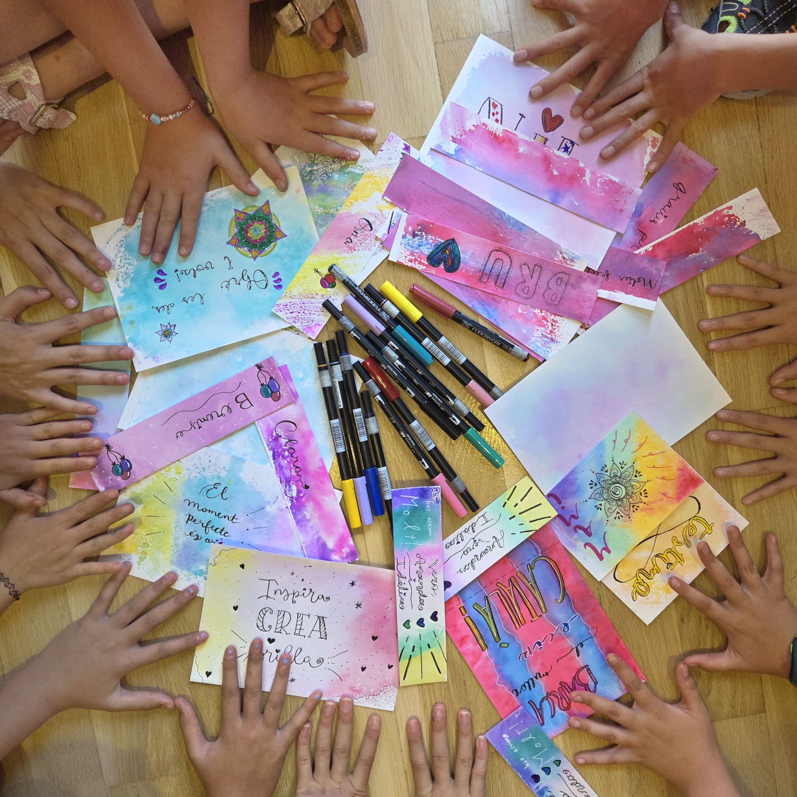 El Lettering té infinites aplicacions, com crear regals personalitzats únics, fer punts de llibre i composicions amb textos conscients, etiquetar pots de cuina, crear titolars atractius per l’escola o formacions, aprendre recursos per bullet journal, harmonitzar racons de casa,…. Però més enllà del resultat el millor del Lettering és el procés de creació i connexió amb tu mateixa, que als tallers experimentem com un regal conscient i especial.
