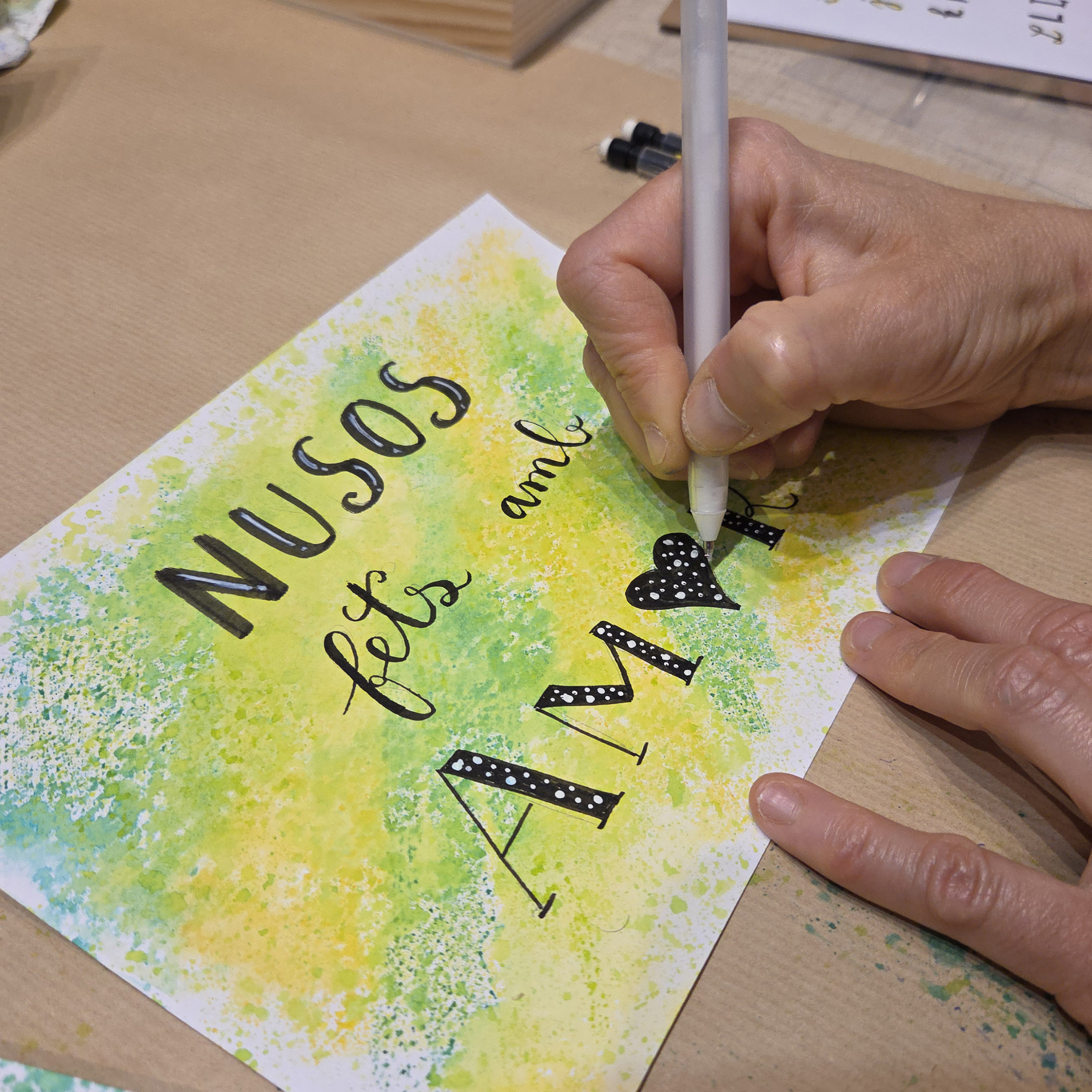 T’acompanyo a descobrir i aprendre la tècnica del Lettering, l’art de dibuixar lletres i paraules boniques, amb un grup reduït i en un espai cuidat i segur, als peus del Montseny.